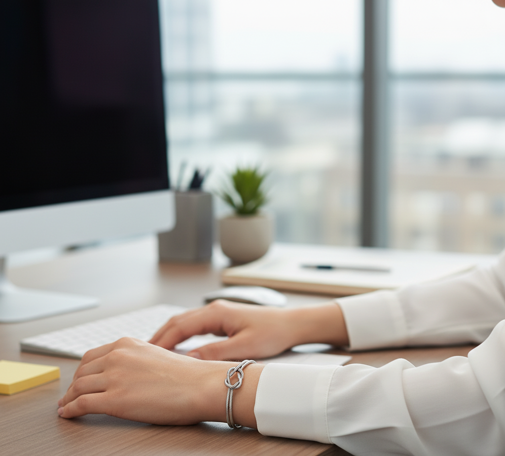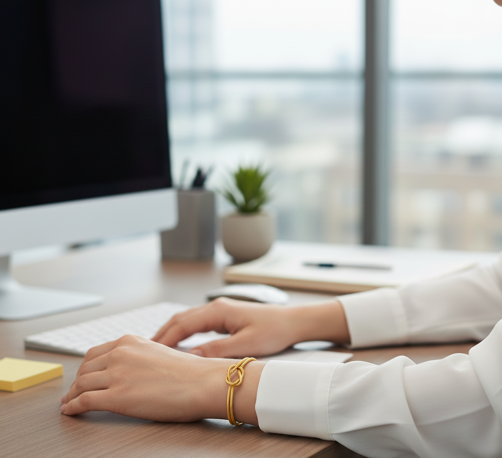 Minimalist bracelet featuring an elegant knot design that symbolizes connection and balance. Lightweight and comfortable, it’s the perfect accessory for adding a touch of understated sophistication to any look.