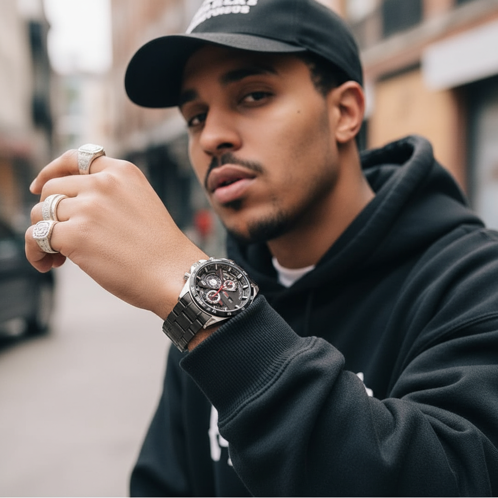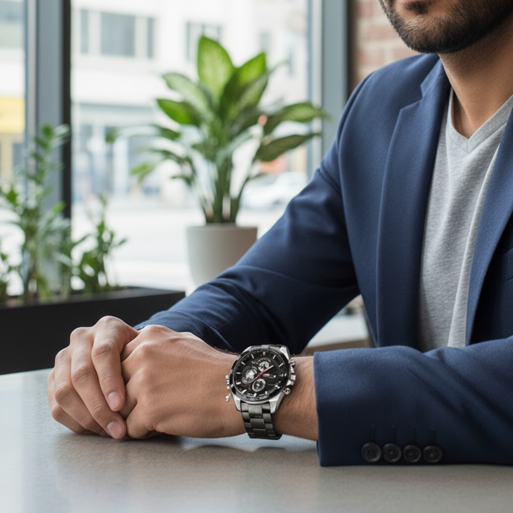 Men’s watch with a bold and modern design, featuring a detailed dial and refined finish. Combines style and performance, perfect for those who value elegance with a confident, sporty touch.